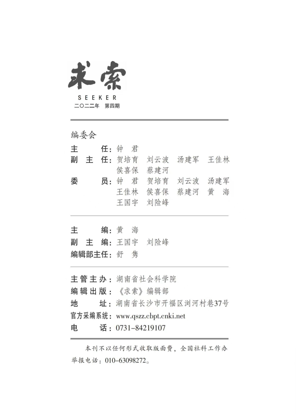 《求索》2022年第4期公开出版