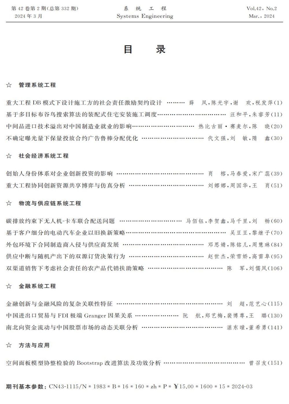 《系统工程》2024年第2期
