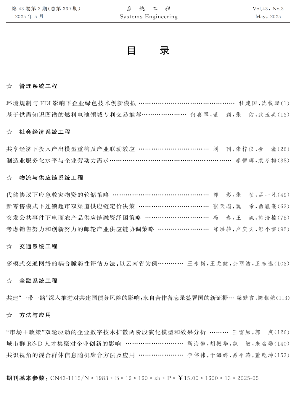 《系统工程》2025年第3期