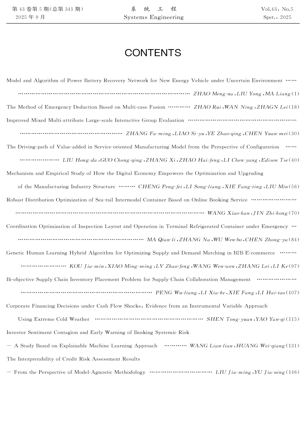 《系统工程》2025年第5期